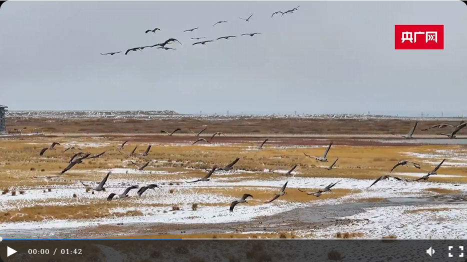 千只灰鹤在嘉峪关草湖国家湿地公园振翅高飞(央广网发 嘉峪关市融媒体中心供图)