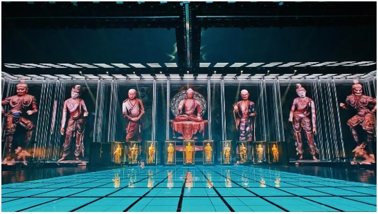 舞美奇观:运用前沿数字技术,结合精妙的舞台设计和灯光效果,在舞台上立体还原敦煌洞窟的恢弘与壁画的精妙,营造如梦似幻的沉浸式观演体验。