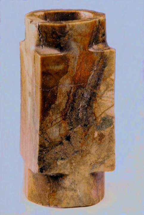 这些玉器长期以来被认为是西周器物,但从材质到不规则的形制及雕琢工艺特征观察,无疑是齐家文化的器物。它们虽然不能套叠使用,但可配对组合。现藏宝鸡市凤翔区博物馆。