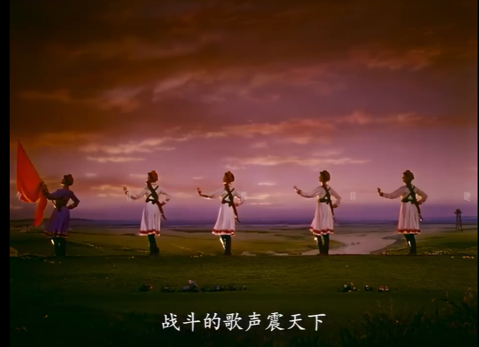 蒙太奇剪辑的节奏再造则重塑了舞蹈的视觉体验。舞台上的舞蹈遵循线性的、不可逆的时间流,而电影通过剪辑,可以打破这种线性束缚,创造全新的节奏与韵律。在表现女民兵与暴风雨搏斗的段落中,快速的镜头切换、不同角度的交替呈现、动作的重复与强化,构建出一种比现场演出更为紧张、更具冲击力的视觉节奏。舞蹈中“扬鞭催马”的豪迈、“战刀闪亮”的凌厉,通过精心设计的剪辑,被提炼为一系列极具标志性的视觉符号,深深烙印在观众的记忆中。