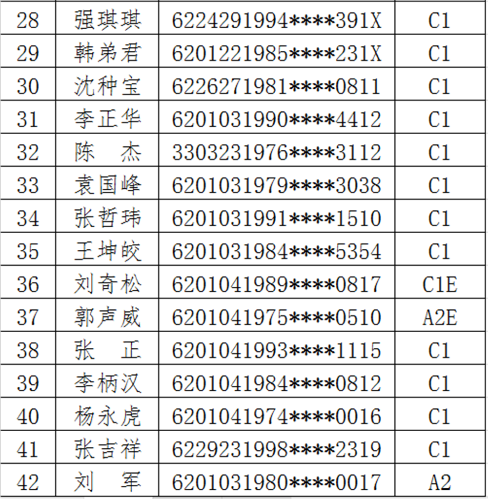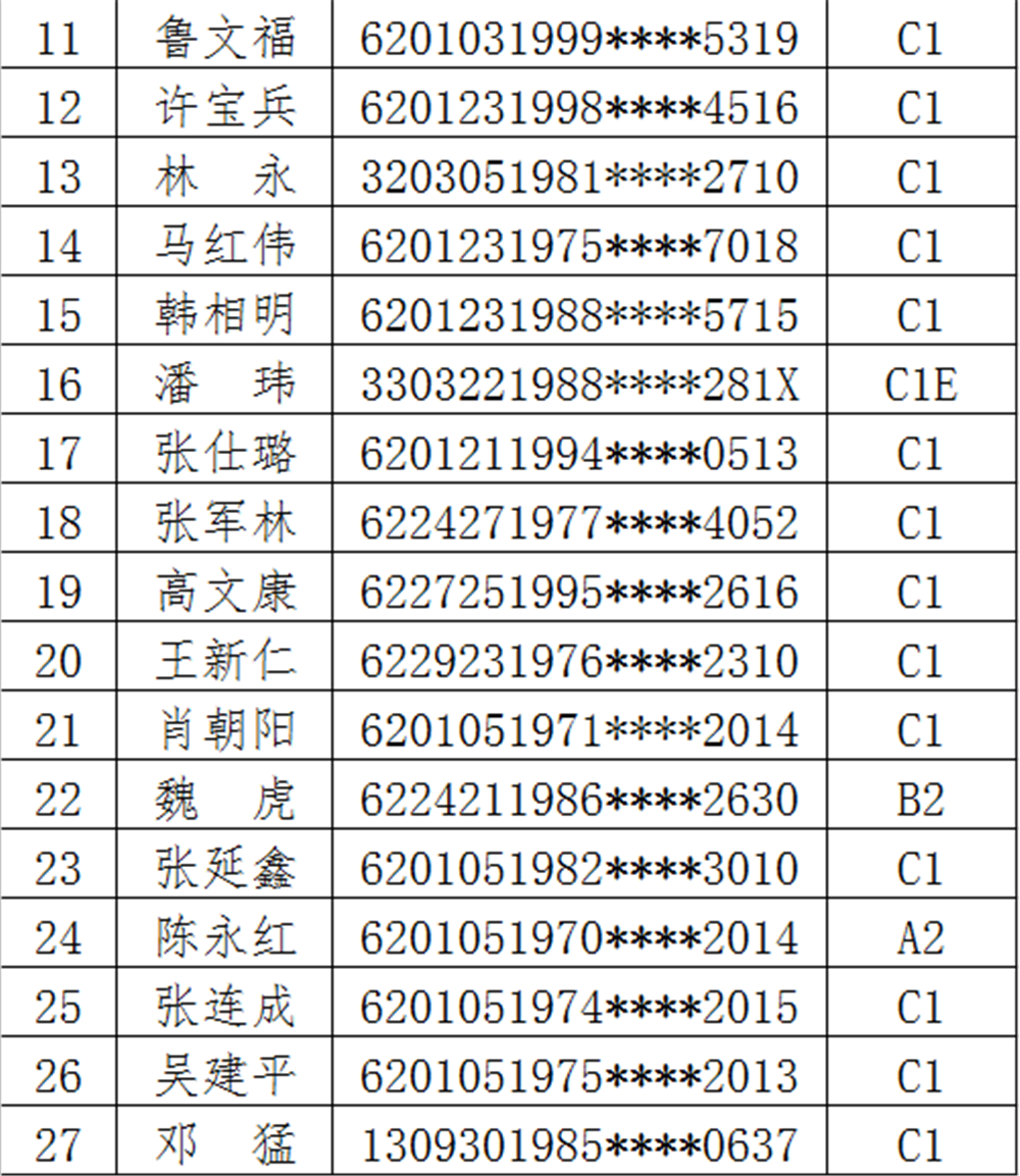 以下为50名醉驾司机名单: