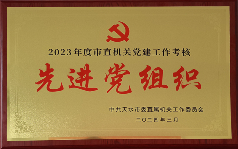 近日,天水市强制隔离戒毒所在2023年度市直机关党建工作考核中被评为“先进党组织”。