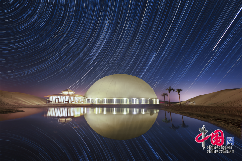 沙坡头旅游区依托良好的生态资源,打造了国内首个以沙漠观星为主题打造的酒店——星星酒店,在苍茫辽阔的沙漠之中,这座造型独特的酒店仿佛星星一般,闪烁其中。